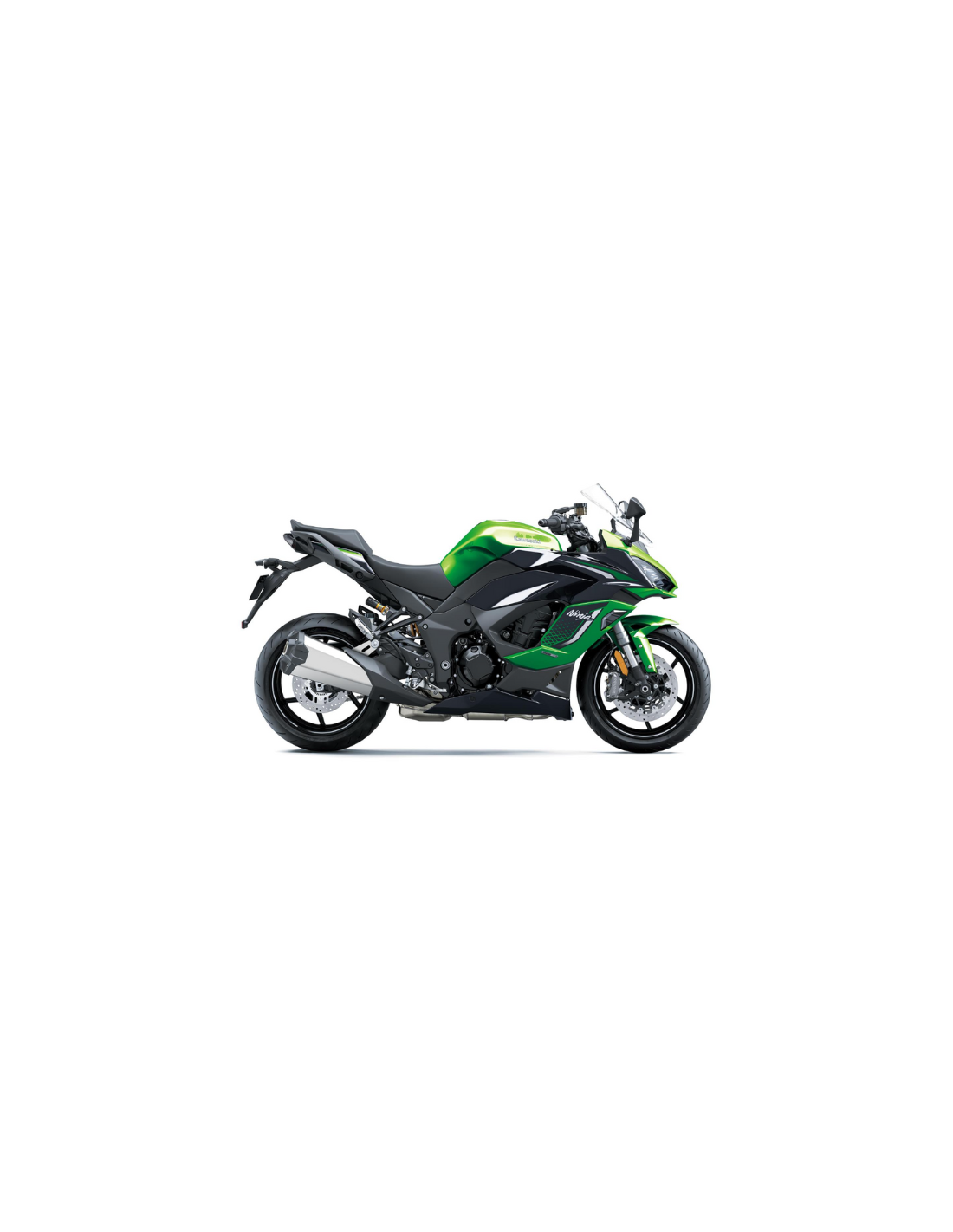 Lo stile che sottolinea l'immagine della famiglia Ninja 1100SX e il potenziale di guida sportiva è caratterizzato da carenature dalle linee filanti e da uno scarico singolo.