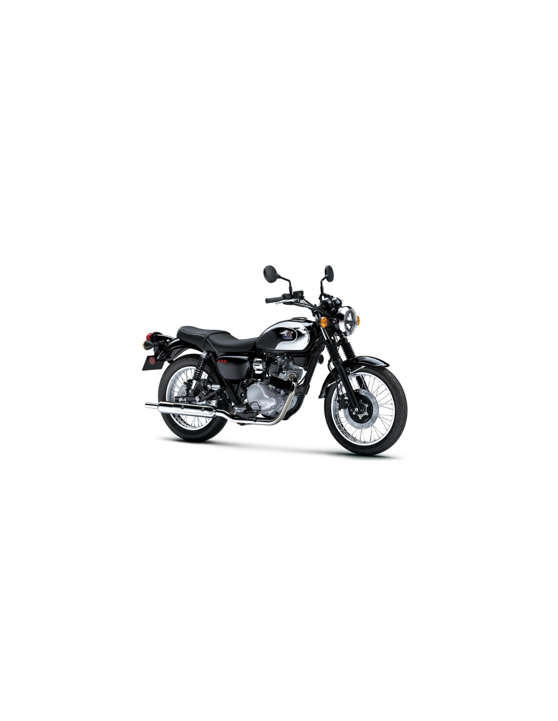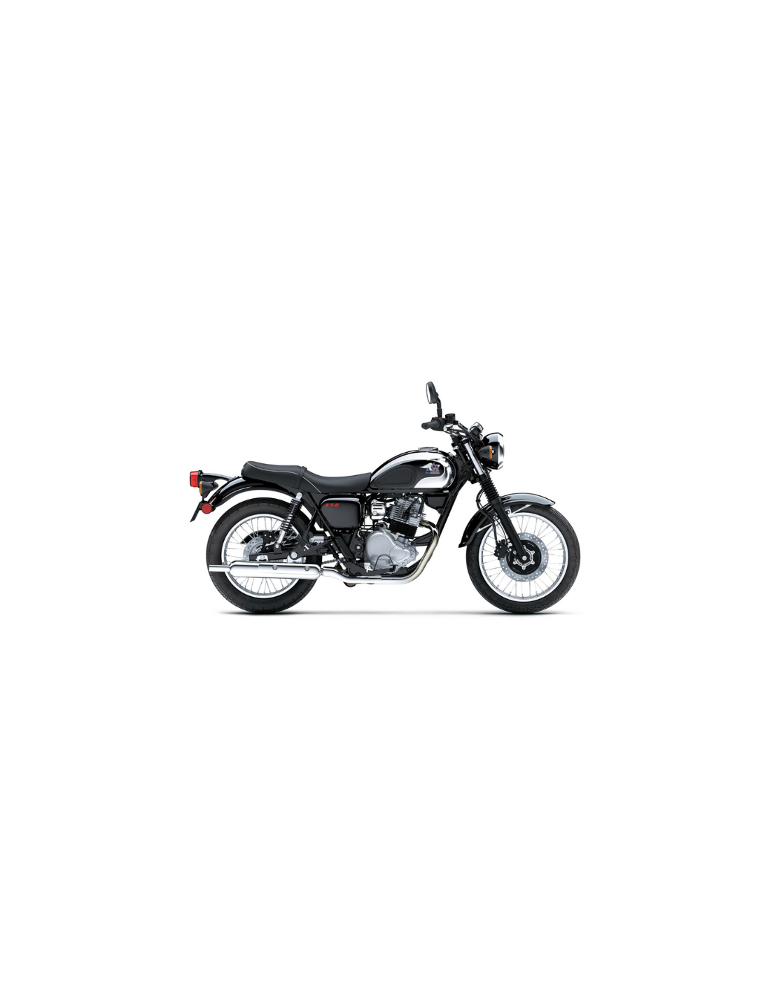 L'impianto di scarico è realizzato in acciaio inossidabile e vanta la finitura lucidata di altissimo livello tipica di Kawasaki. Il collettore scorre con eleganza dal motore fino al silenziatore in stile pea-shooter, riproponendo il fascino dei primi modelli Meguro e conferendo alla moto un autentico stile classico.